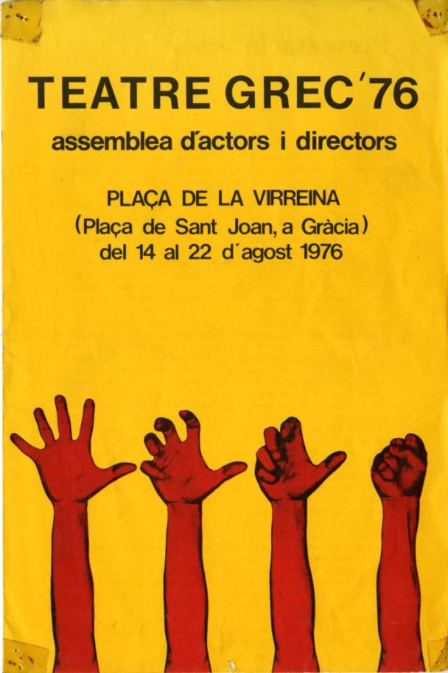 El 1975, el dictador finalment va morir, al seu llit, ben cuidat, i com es pot comprovar encara, només físicament. Però ja va ser suficient com per a què al cap d’uns mesos, entrats al 1.976 es creés l’AAD (Assemblea d’Actors i Directors) per part del sector teatral. Els podia la necessitat d’impulsar una nova forma de fer i de viure el teatre. Al punt de mira, el Grec. L’eslògan: “Teatre Grec 76 – Temporada popular, per un teatre al servei del poble, teatre i llibertat, per un teatre imaginatiu”.